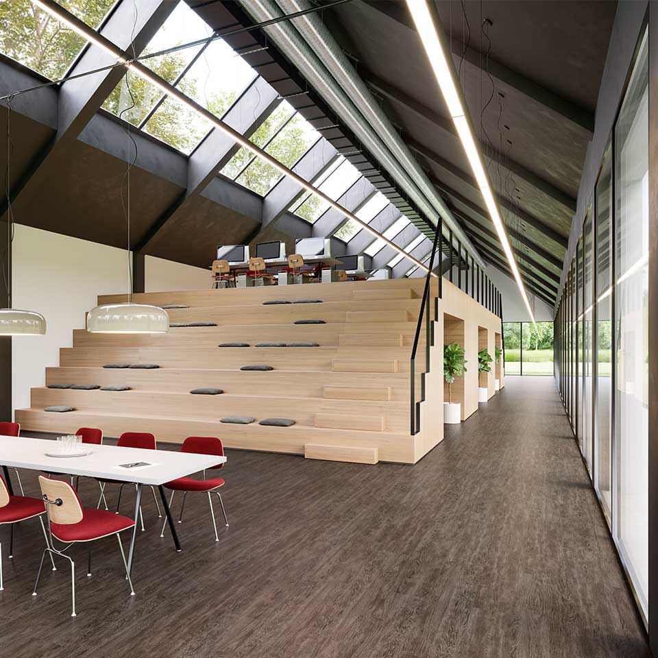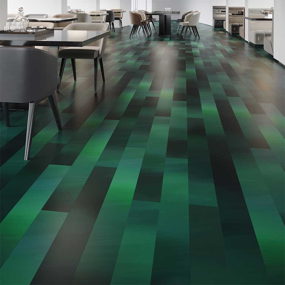 Today’s resilient flooring is manufactured much in the same way it always has been, yet the styles and technologies have evolved with the times. Our resilient flooring uses ultra-low VOC, water based inks (VOC’s are “volatile organic compounds”, which can be detrimental to indoor air quality).