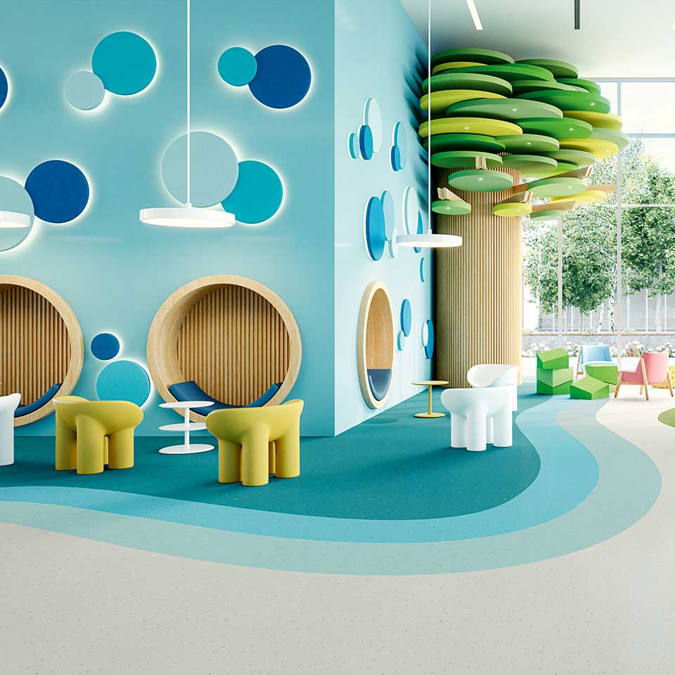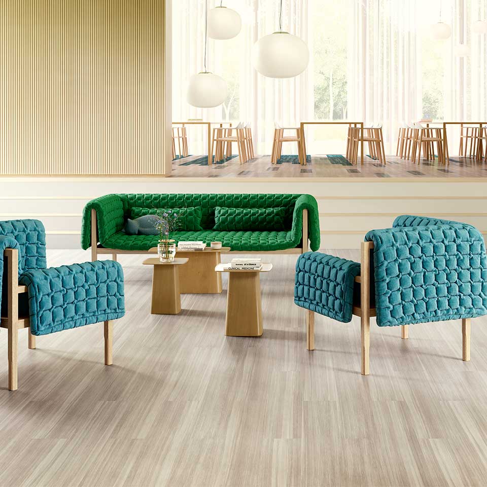 Today’s resilient flooring is manufactured much in the same way it always has been, yet the styles and technologies have evolved with the times. Our resilient flooring uses ultra-low VOC, water based inks (VOC’s are “volatile organic compounds”, which can be detrimental to indoor air quality).